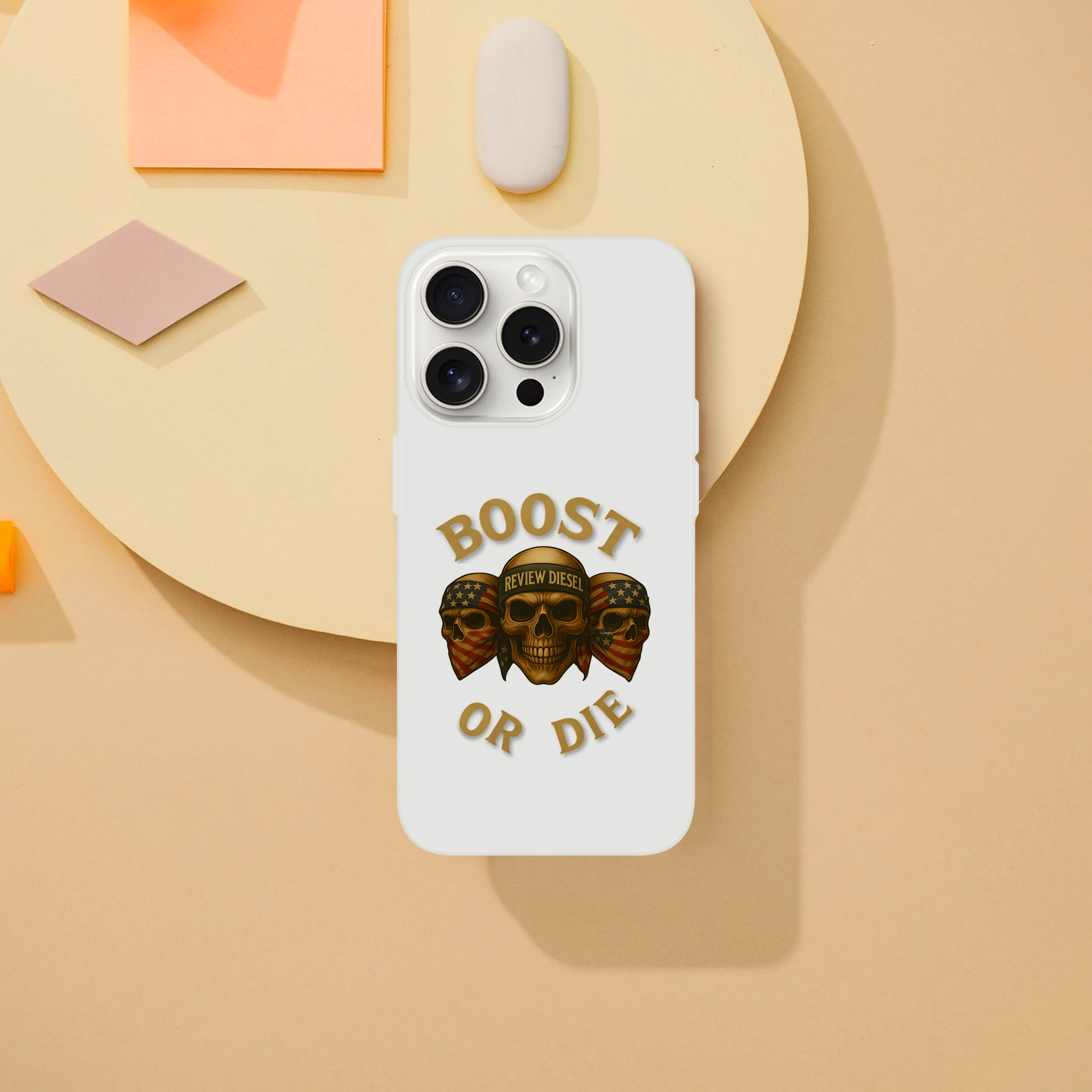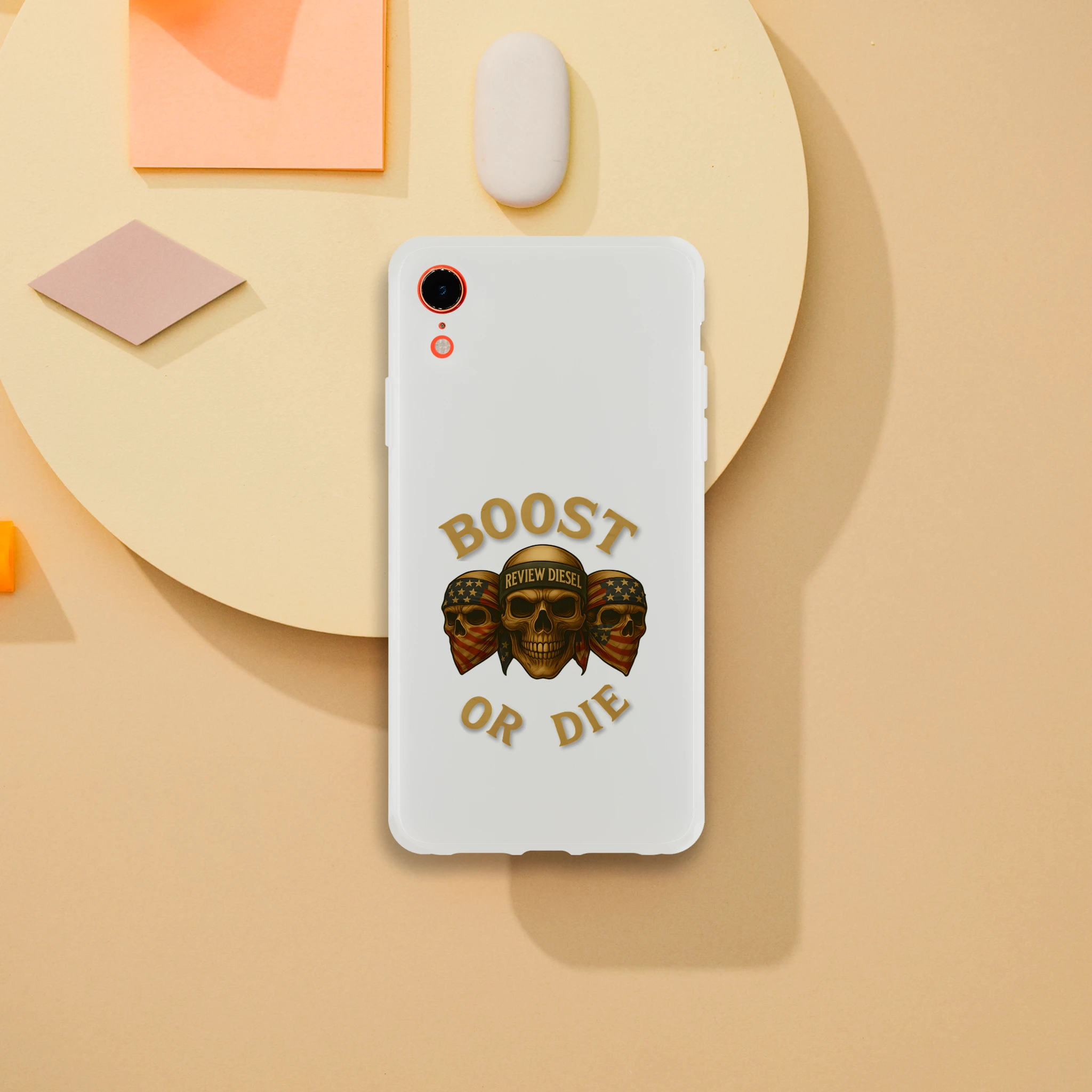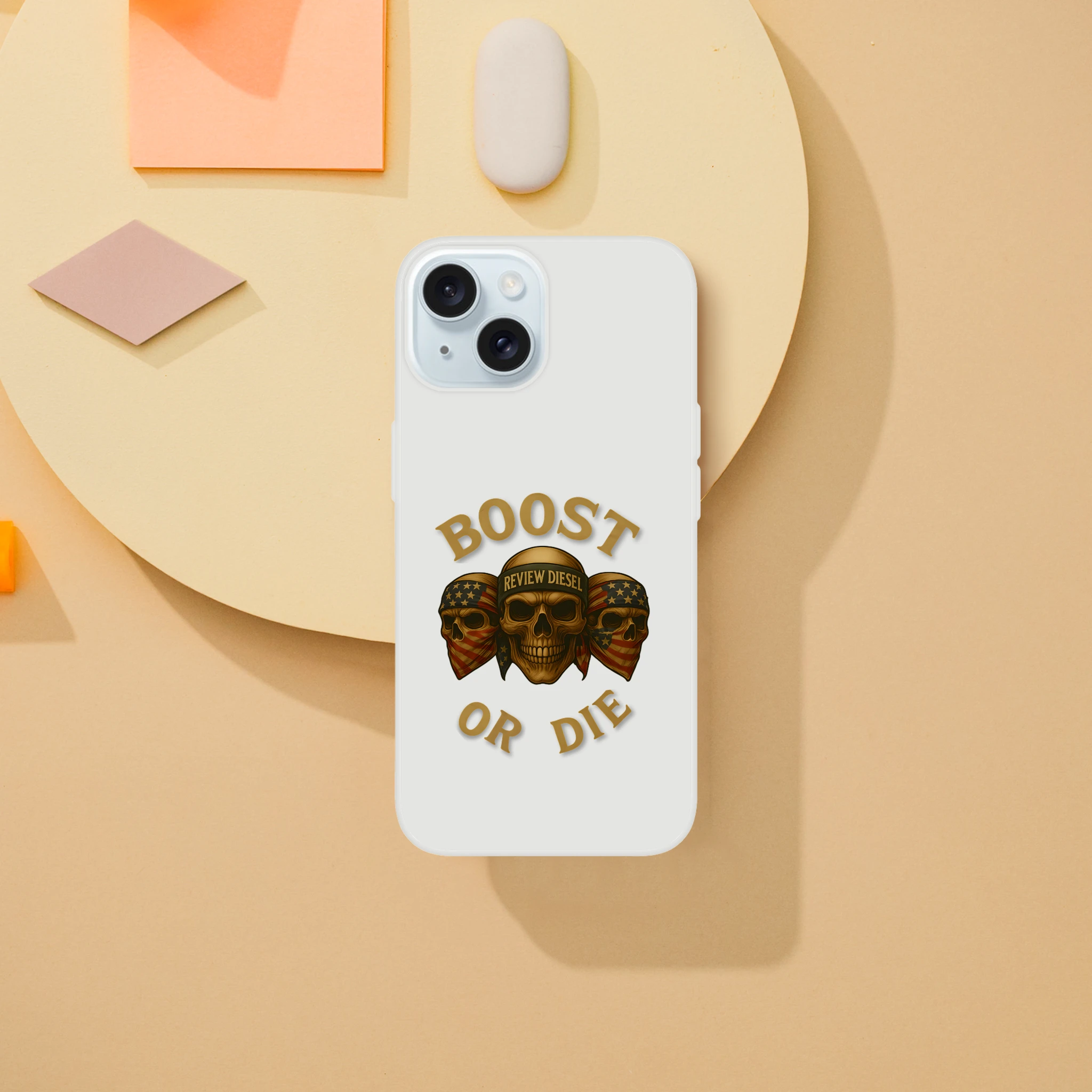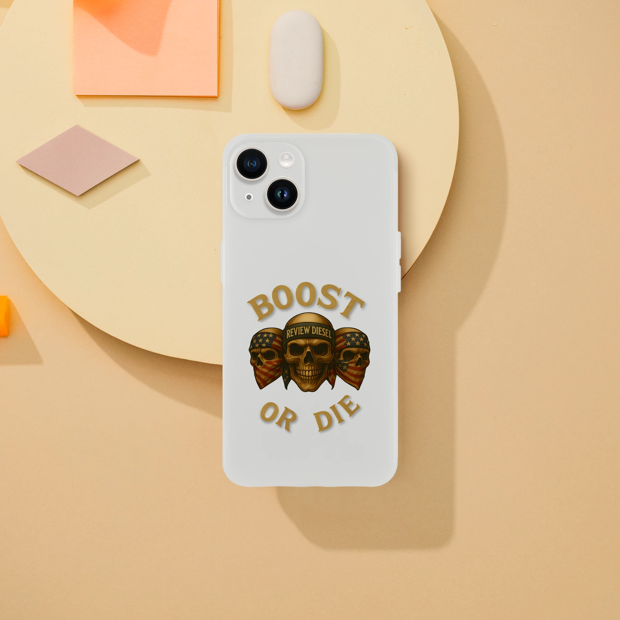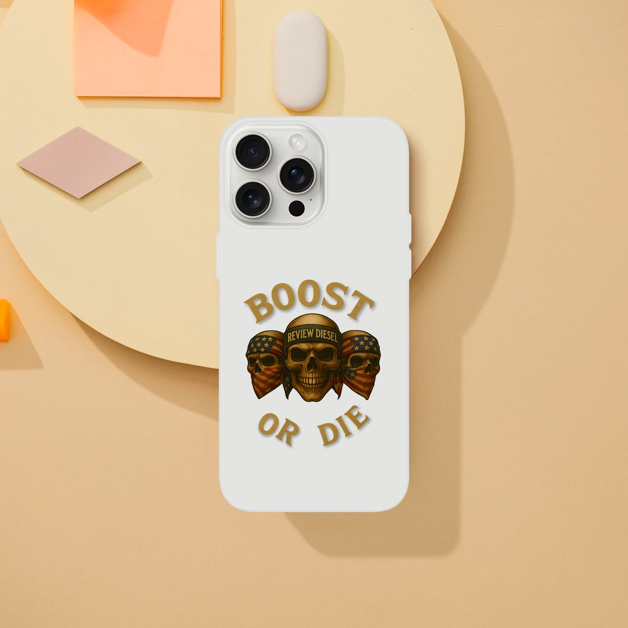 The Review Diesel Apple Flexi Case features our Boost or Die artwork from The Skull Collection, printed on a frosty transparent shell that lets your phone — and your style — shine through. Lightweight, flexible, and impact-resistant, it’s built for everyday use without adding bulk.