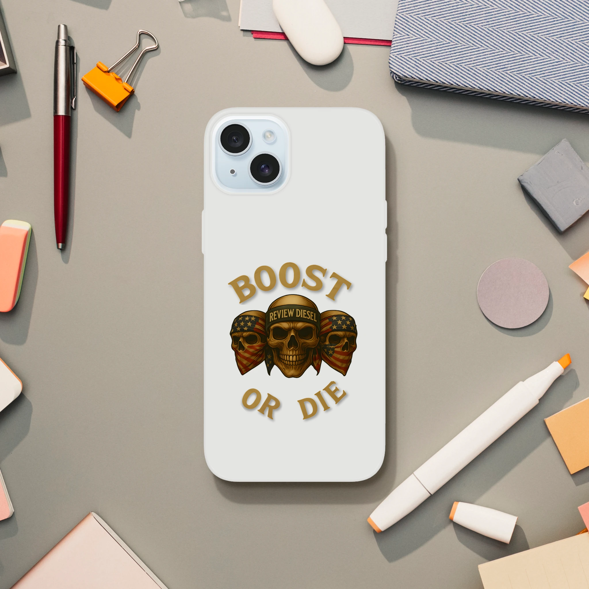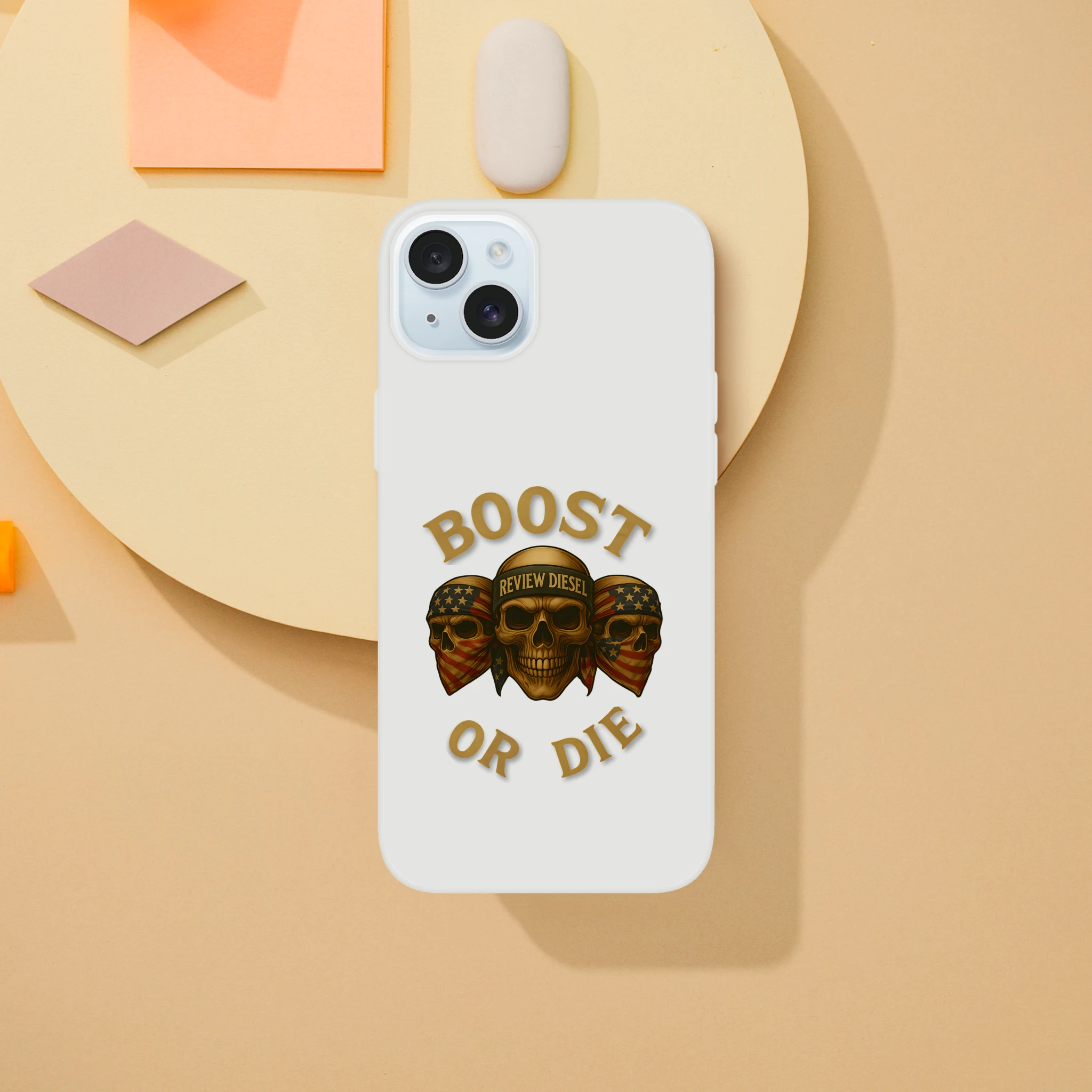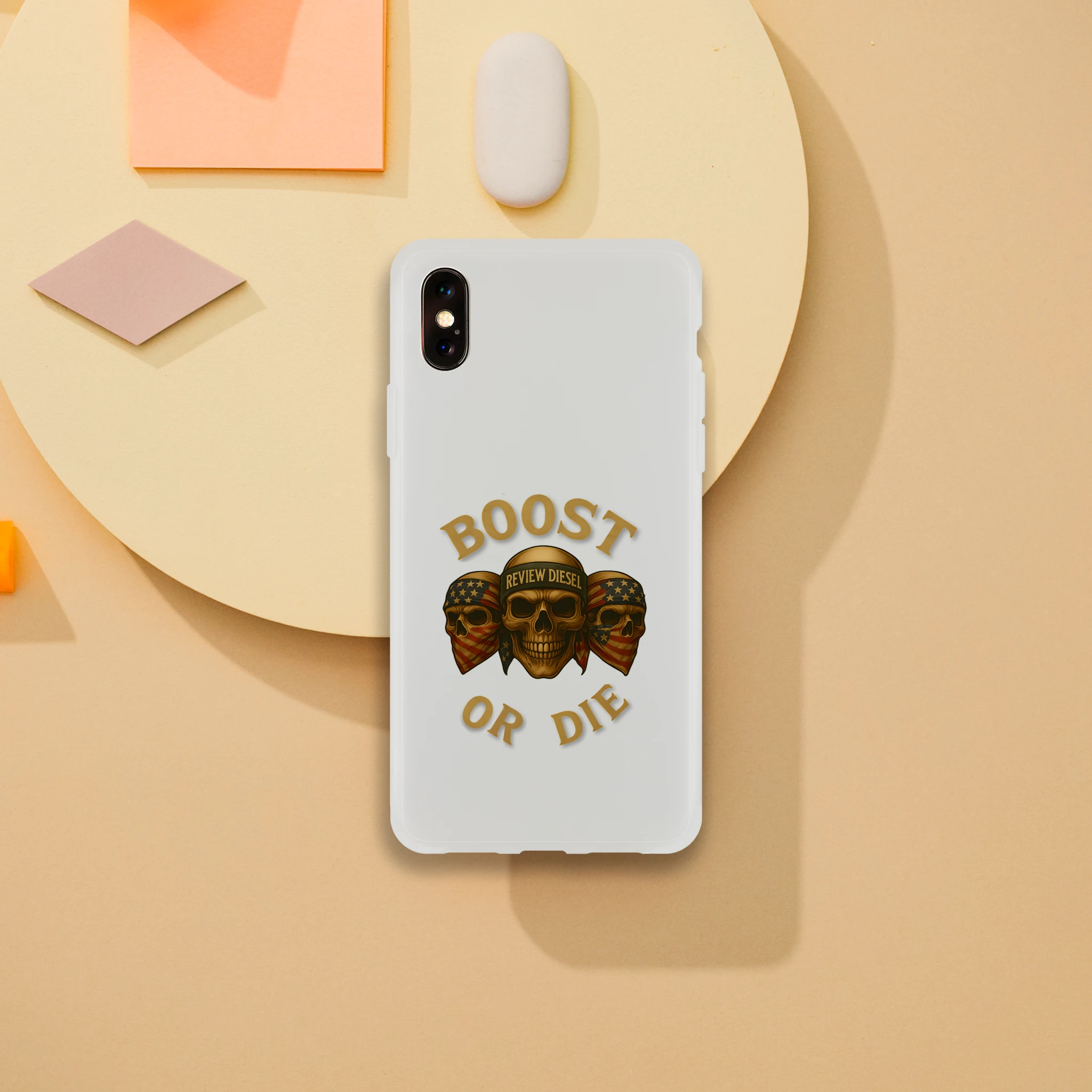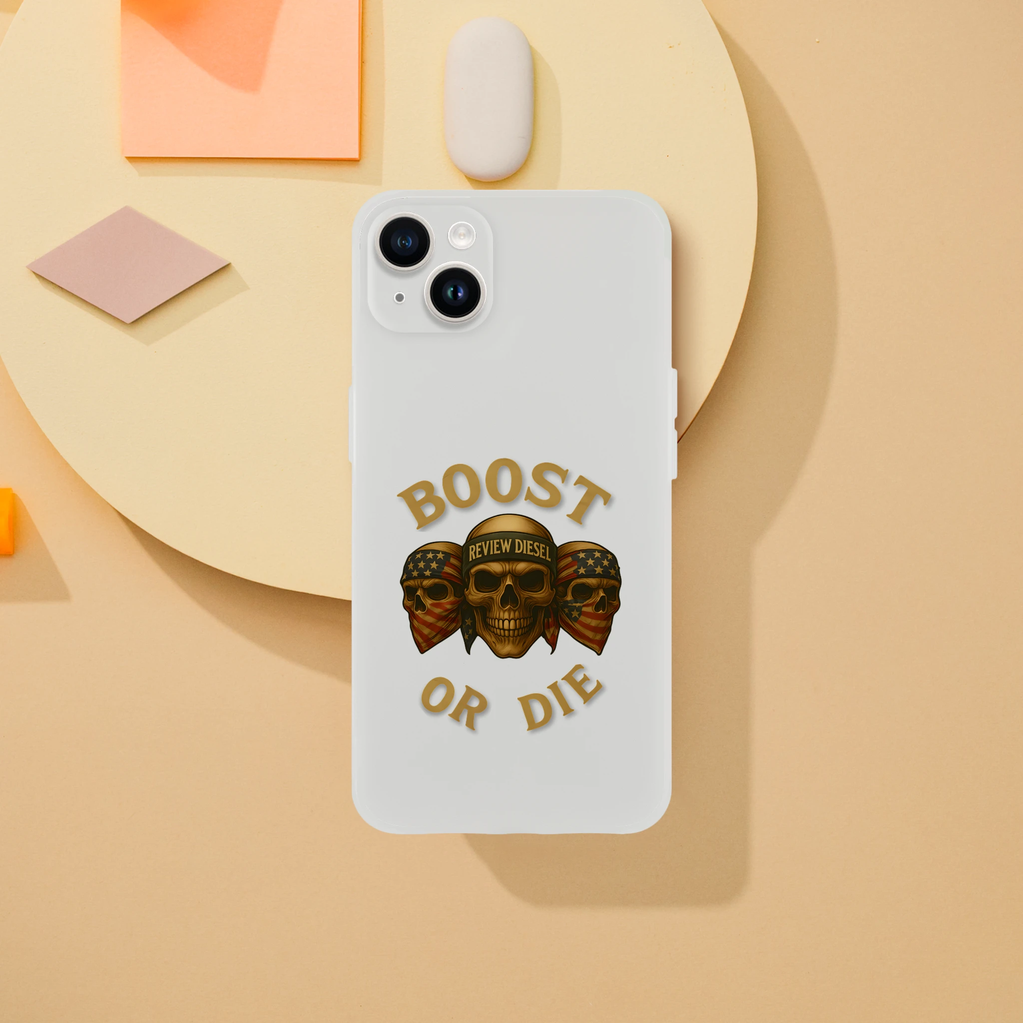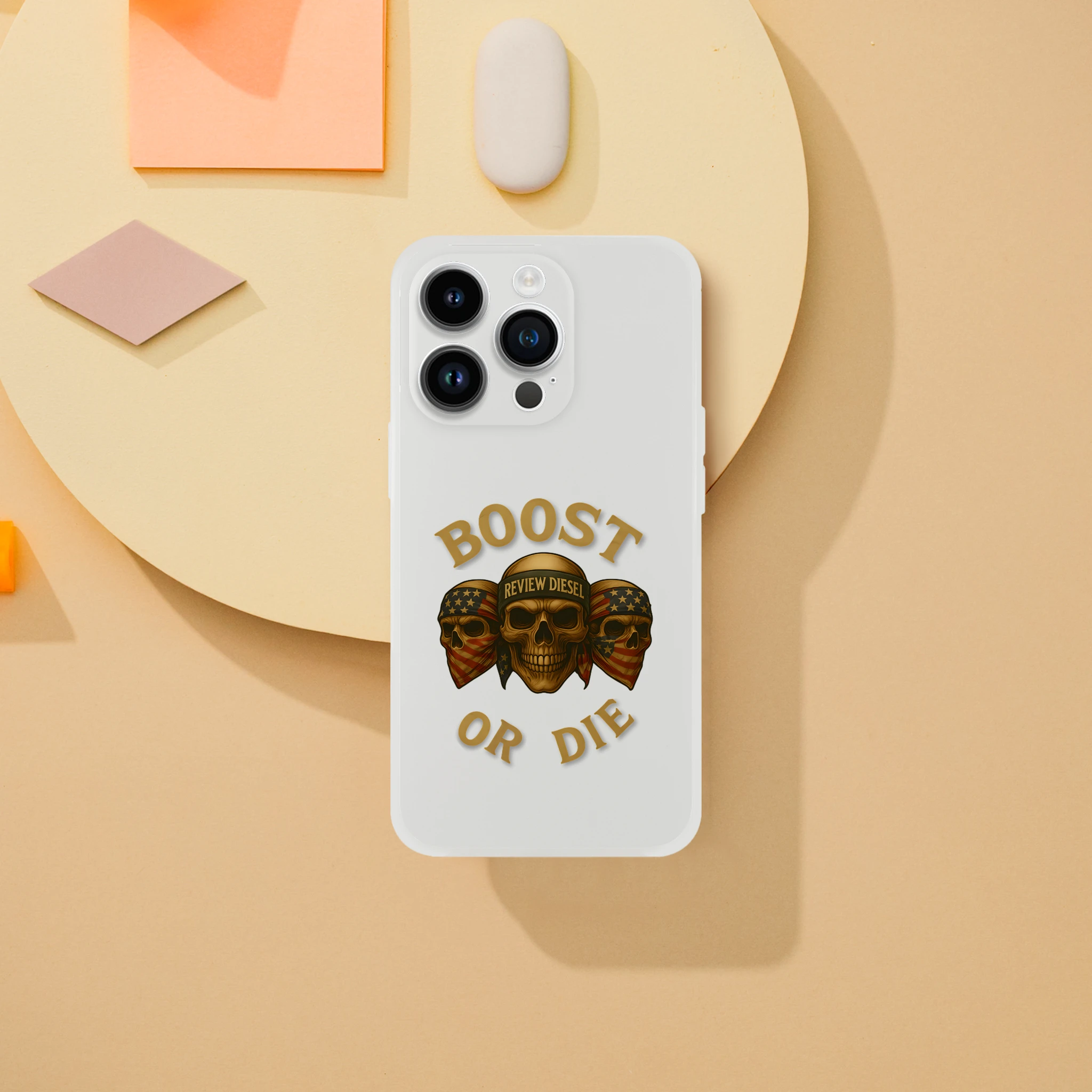 The Review Diesel Apple Flexi Case features our Boost or Die artwork from The Skull Collection, printed on a frosty transparent shell that lets your phone — and your style — shine through. Lightweight, flexible, and impact-resistant, it’s built for everyday use without adding bulk.
