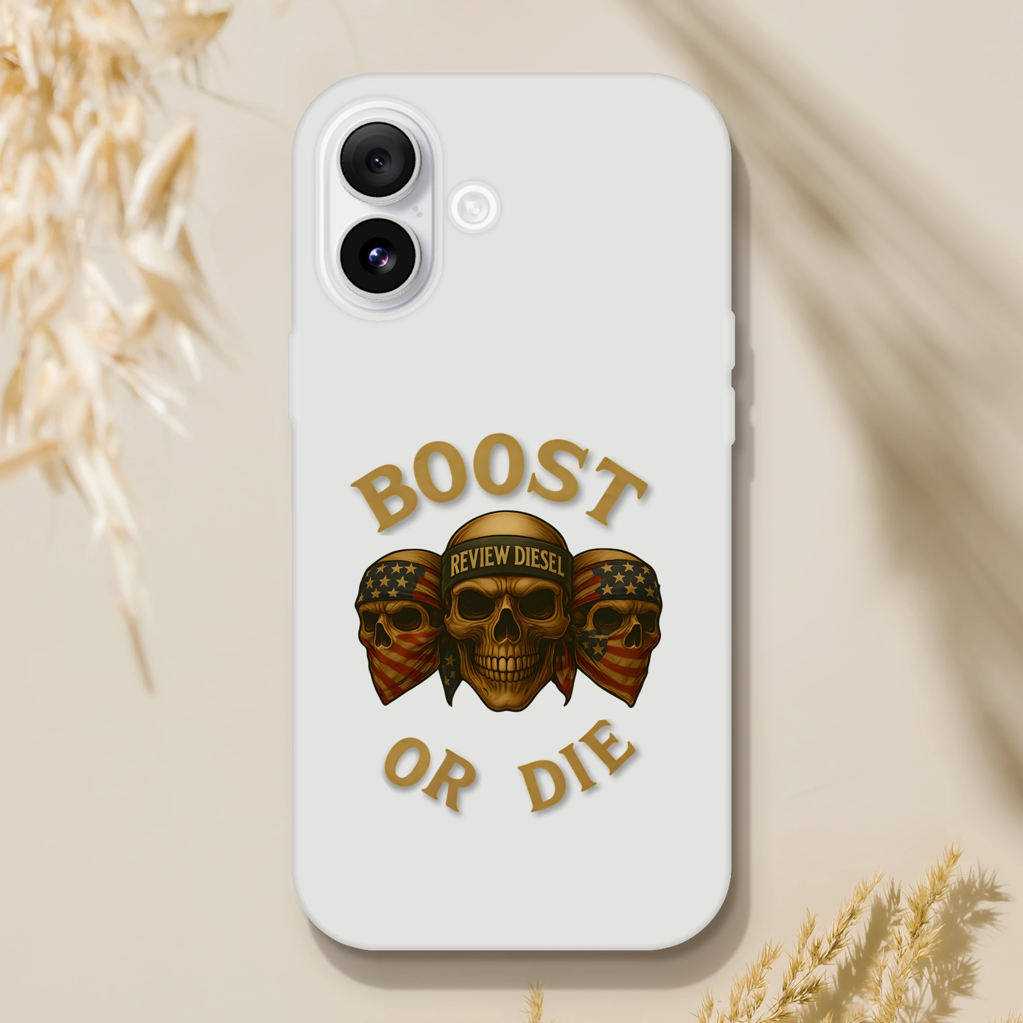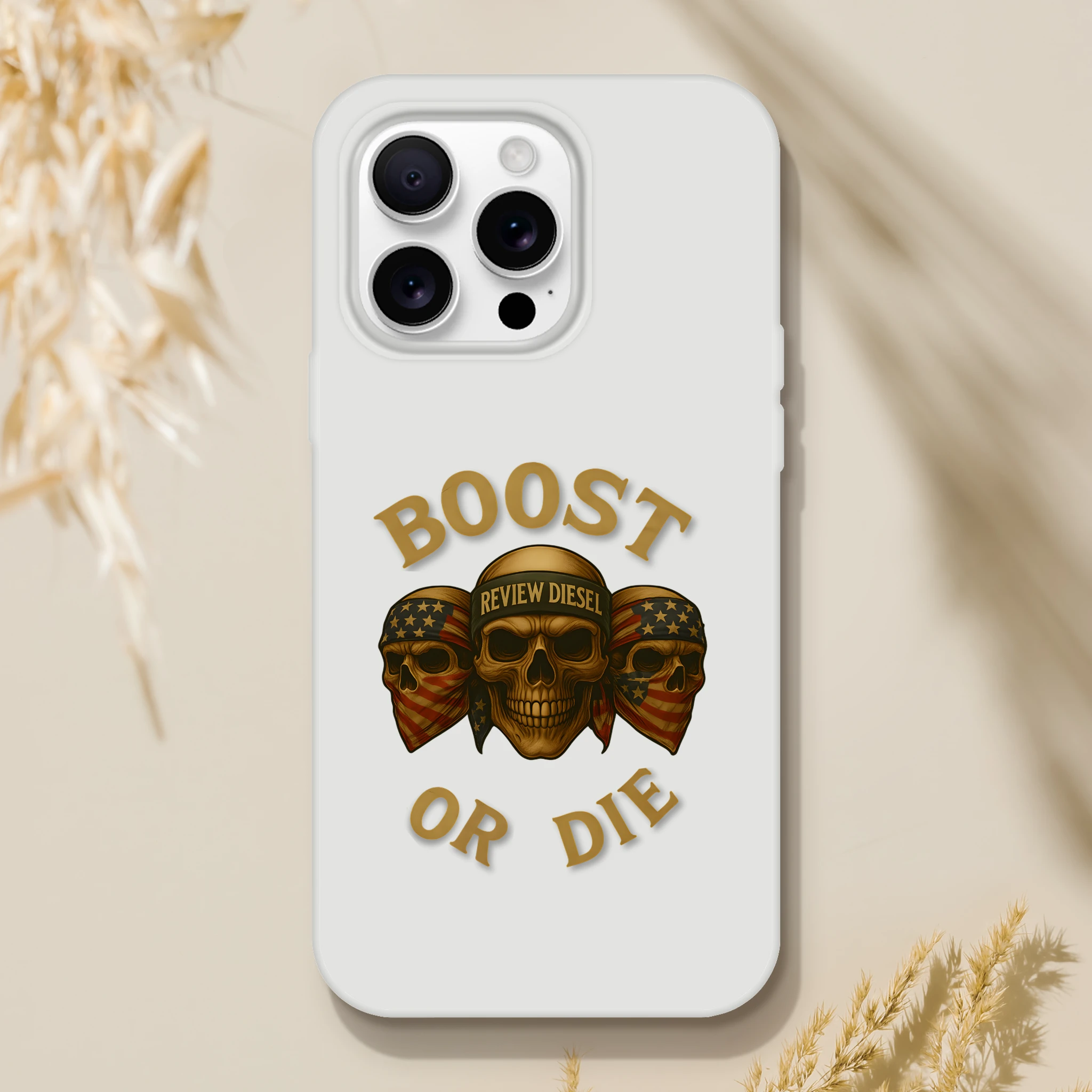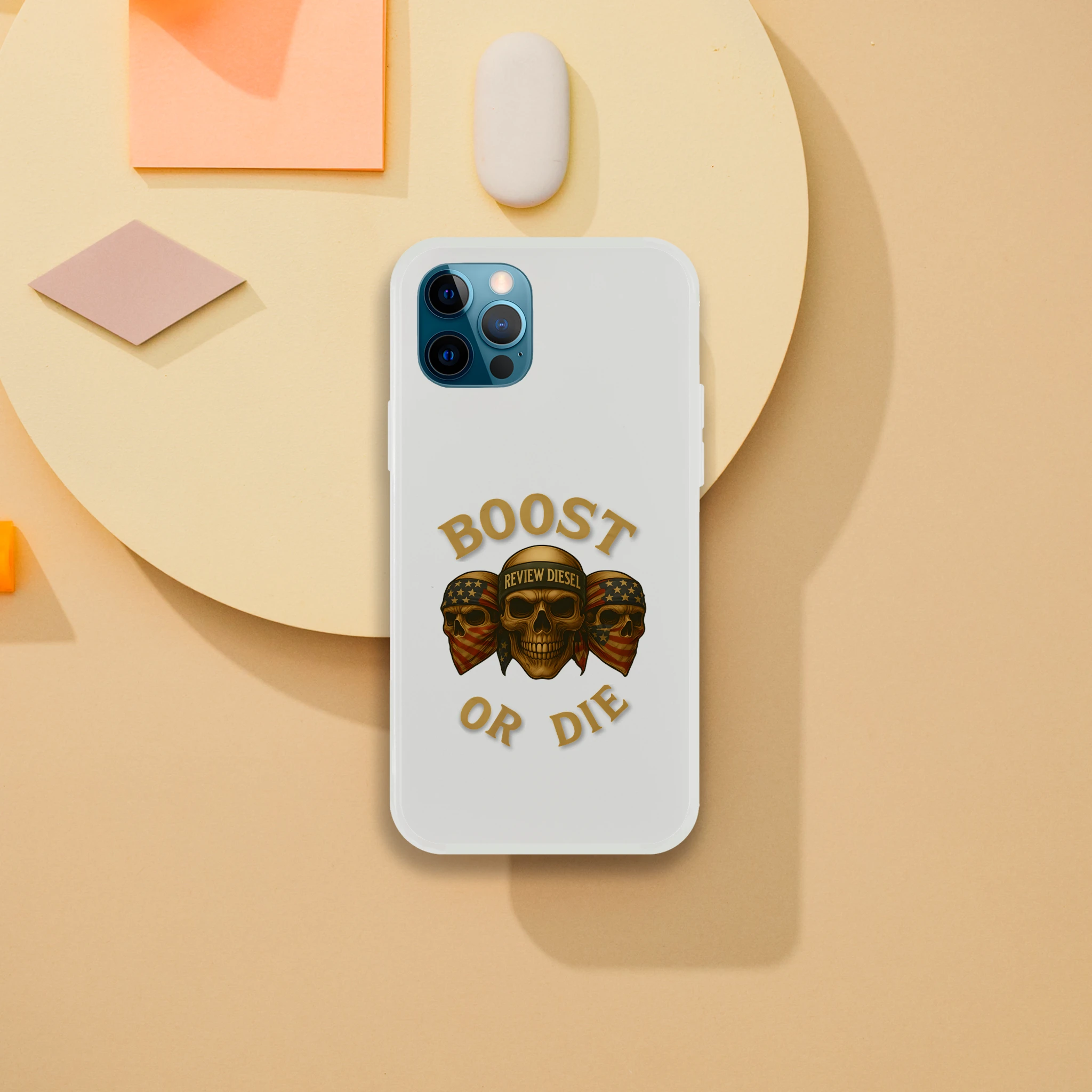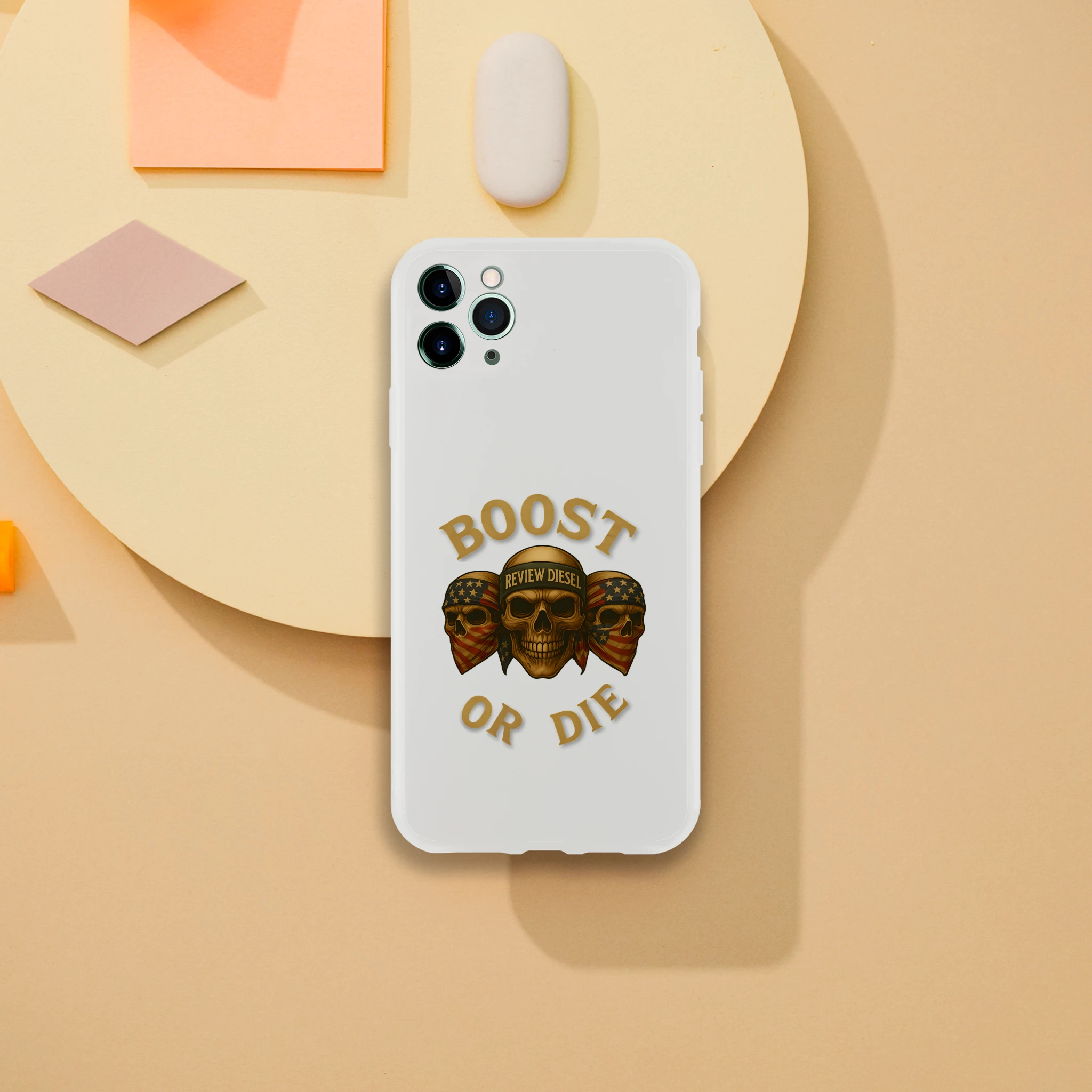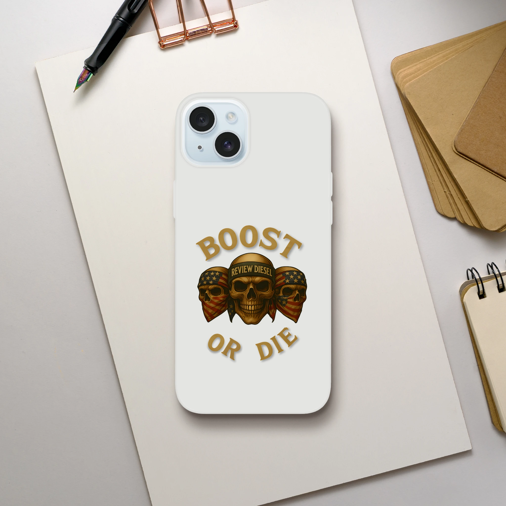 The Review Diesel Apple Flexi Case features our Boost or Die artwork from The Skull Collection, printed on a frosty transparent shell that lets your phone — and your style — shine through. Lightweight, flexible, and impact-resistant, it’s built for everyday use without adding bulk.