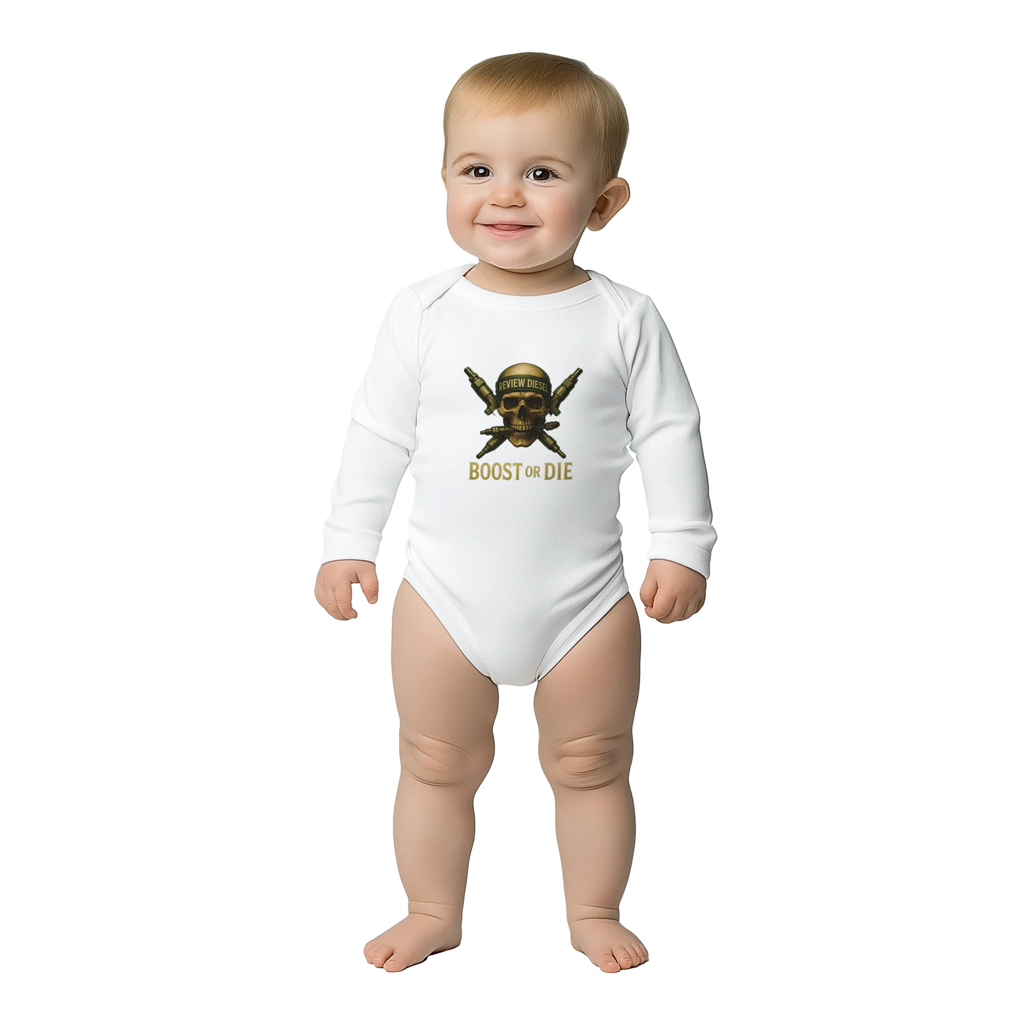 • Part of The Skull Collection – Includes the custom skull-and-boost artwork adapted for baby apparel.
