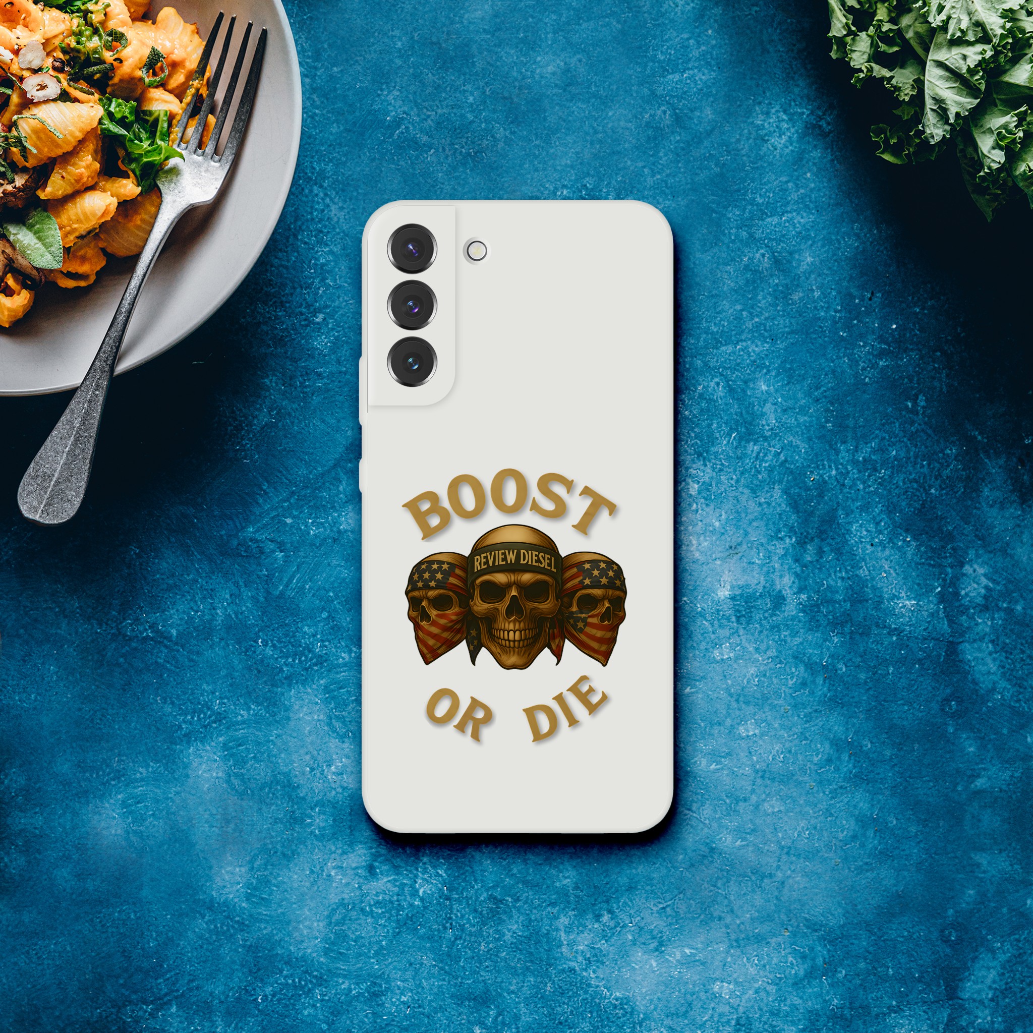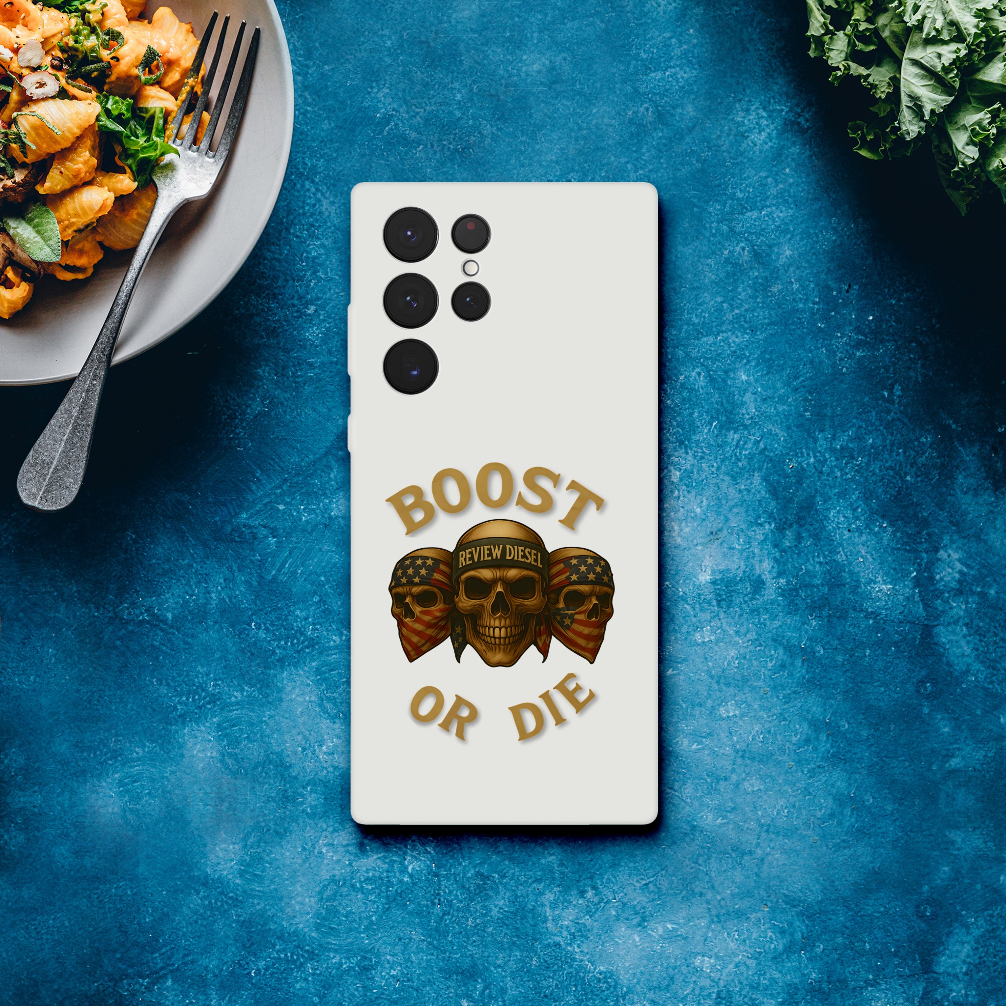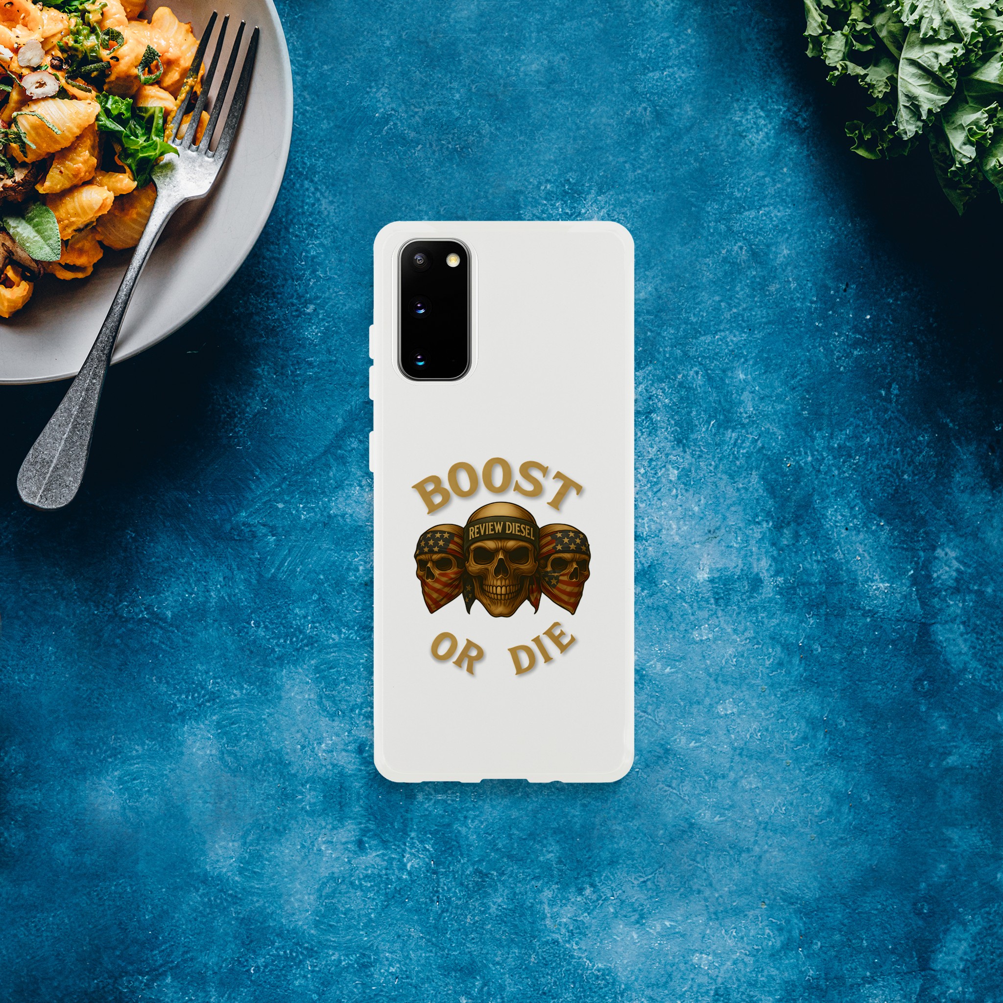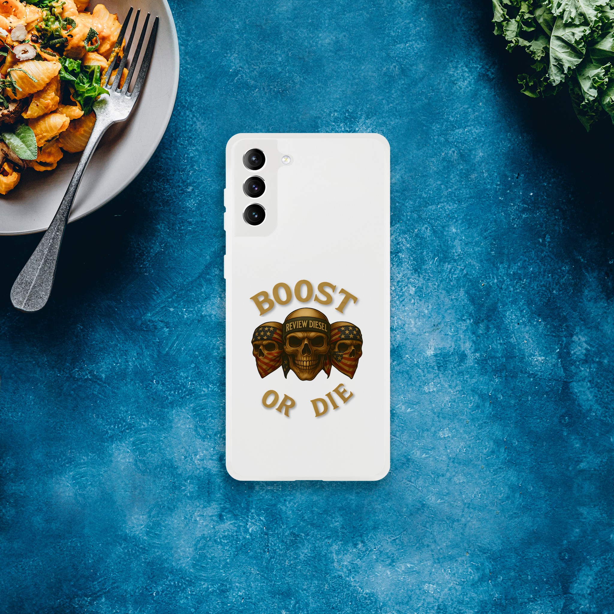 The Review Diesel Samsung Flexi Case features our Boost or Die artwork from The Skull Collection, printed on a frosty transparent shell that lets your phone — and your style — shine through. Lightweight, flexible, and impact-resistant, it’s built for everyday use without adding bulk.